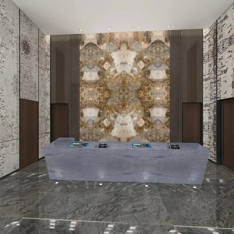 Το Adamantium Quartzite, μια εξωτική φυσική πέτρα, είναι γνωστή για τα μοναδικά μοτίβα του και το εκπληκτικό μείγμα των χρωμάτων. Προερχόμενοι από τα λατομεία της Βραζιλίας, αυτή η μοναδική και ποικιλόμορφη ποικιλία από χαλαζίτη χαρακτηρίζεται από λεπτές μπλε αποχρώσεις και αεριωθούμενα ή σκούρα γκρι αποχρώσεις. Όνομα προϊόντος: Αδάμηνη πλάκα χαλαζίτη Εργοστάσιο: Xiamen Wow Stone Co., Ltd. Χώρα προέλευσης: Βραζιλία MOQ: 1 PC Επιφάνεια: γυαλισμένο, yered Χρήσιμες: ευπροσάρμοστες για εσωτερική και εξωτερική διακόσμηση, που χρησιμοποιούνται συνήθως σε πλακάκια τοίχου και δαπέδου, πάγκους, κορυφές ματαιοδοξίας, σκάλες, στήλες, ψηφιδωτά και άλλα, καθιστώντας το ιδανικό για διάφορα έργα κατασκευής και σχεδιασμού.