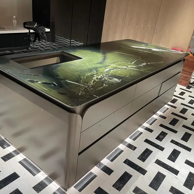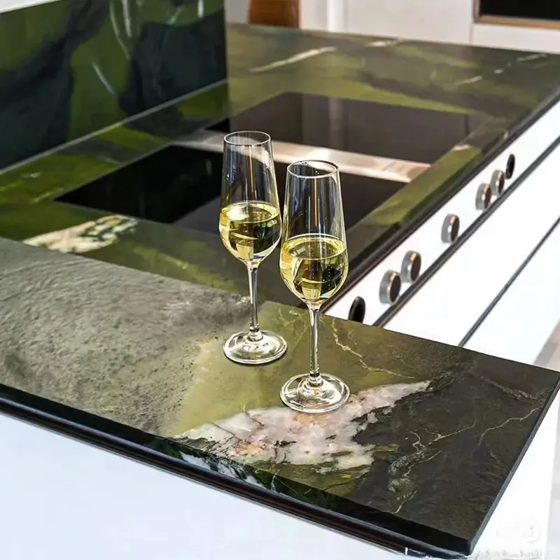 Για τους πράσινους χαλαζίτες Benchtops στα νησιά της κουζίνας, αναμειγνύετε την ανθεκτικότητα με αισθητική έκκληση.