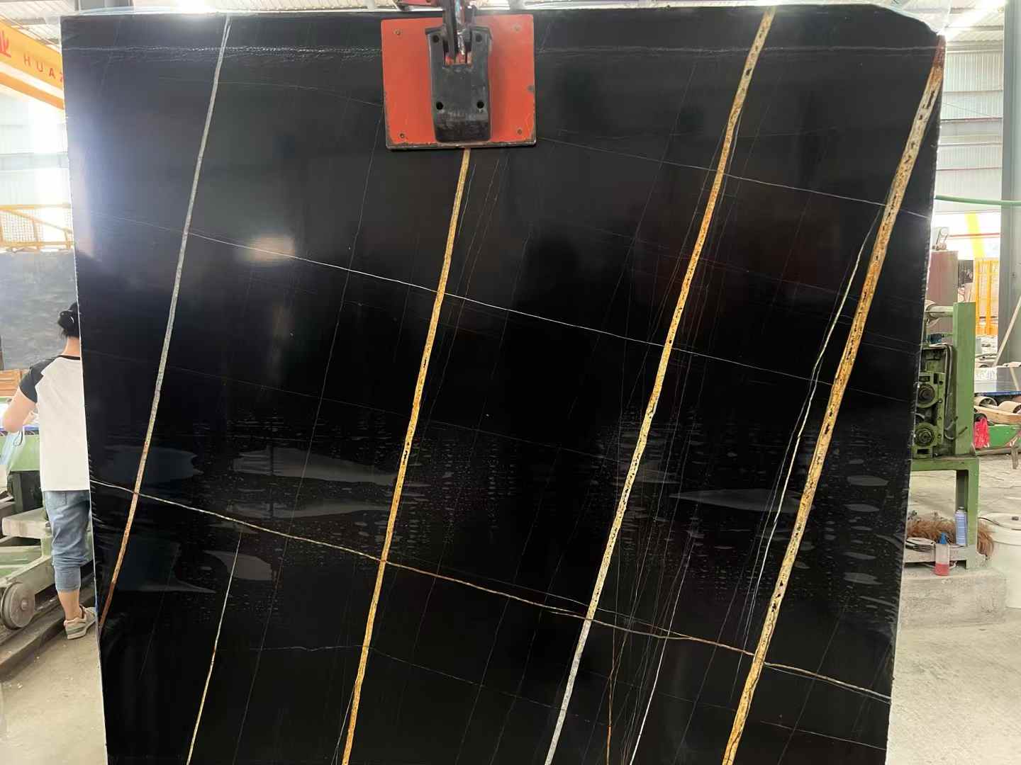 Με το σωστό συνδυασμό βαθύ μαύρο φόντο, ισχυρό χρυσό και μια σωστά αναλογική λευκή φλέβα, οποιαδήποτε επιφάνεια μπορεί να μετατραπεί σε κεντρικό κομμάτι. Χρησιμοποιείται κυρίως σε μαύρα μαρμάρινα δωμάτια, είτε ως τραπεζαρία μαύρης μαρμάρινης τραπεζαρίας, ματαιοδοξία μαύρου μαρμάριου μπάνιου που είναι show-stopping, είτε ένα μαύρο πέτρινο τζάκι που είναι ένα επίκεντρο. Οι πιο μηχανικές πέτρες προσπαθούν να επιτύχουν αυτό το βλέμμα, αλλά δεν υπάρχει τίποτα σαν το πραγματικό πράγμα.