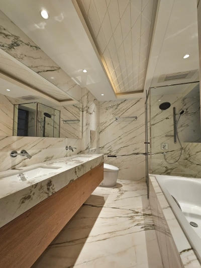 Από την άποψη των εσωτερικών περιβαλλόντων, φαίνεται μερικές φορές το μπροστινό στάδιο. Τα πλούσια χρώματα του Marble, η φυσική φλέβα και το γυαλισμένο φινίρισμα καθιστούν μια κοινή επιλογή εσωτερικών χώρων. Το μάρμαρο είναι ιδανικό για το λόμπι του ξενοδοχείου, την αίθουσα ανελκυστήρα, το σαλόνι και ακόμη και το σχέδιο μπάνιου. Ωστόσο, για τη συνέπεια του τόνου και της ανθεκτικότητας, οι περιοχές με έντονες κυκλοφοριακές κυκλοφορίες, όπως οι σκάλες ή οι πόρτες, μπορούν επίσης να επωφεληθούν από γρανίτη με λεπτό μοτίβο.