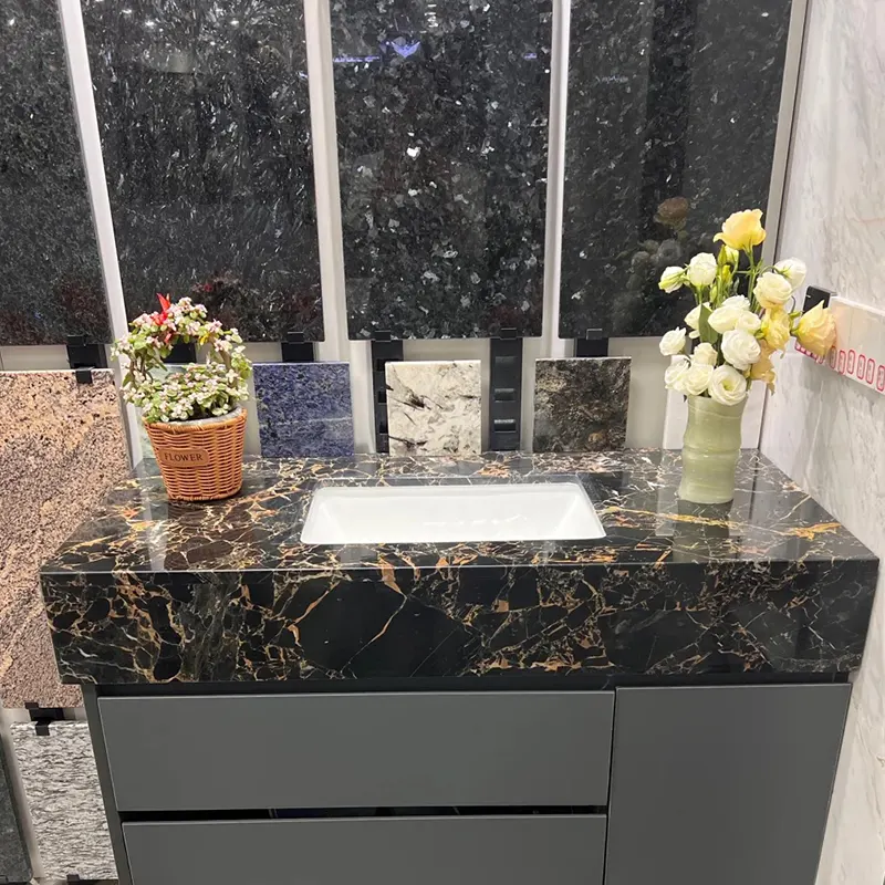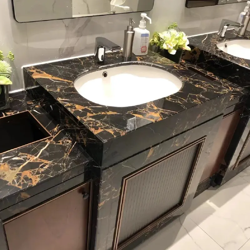 Αν θέλετε μια εμφάνιση spa high-end, το Portoro Gold Marble είναι μια εξαιρετική επιλογή. Οι σχεδιαστές συχνά το χρησιμοποιούν για ματαιοδοξίες μαύρου μαρμάριου μπάνιου, μαύρα μαρμάρινα αξεσουάρ μπάνιου ή ολόκληρες μαύρες μαρμάρινες επενδύσεις. Ο χρυσός και ο μαύρος μαζί κάνουν έναν ήρεμο αλλά πολυτελές χώρο.