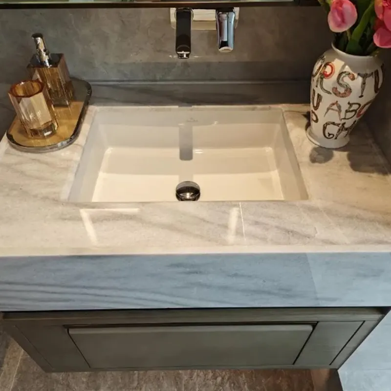 Κορυφές ματαιοδοξίας και πάγκοι: πλάκες πάχους 25 mm για κομψότητα και ανθεκτικότητα.
